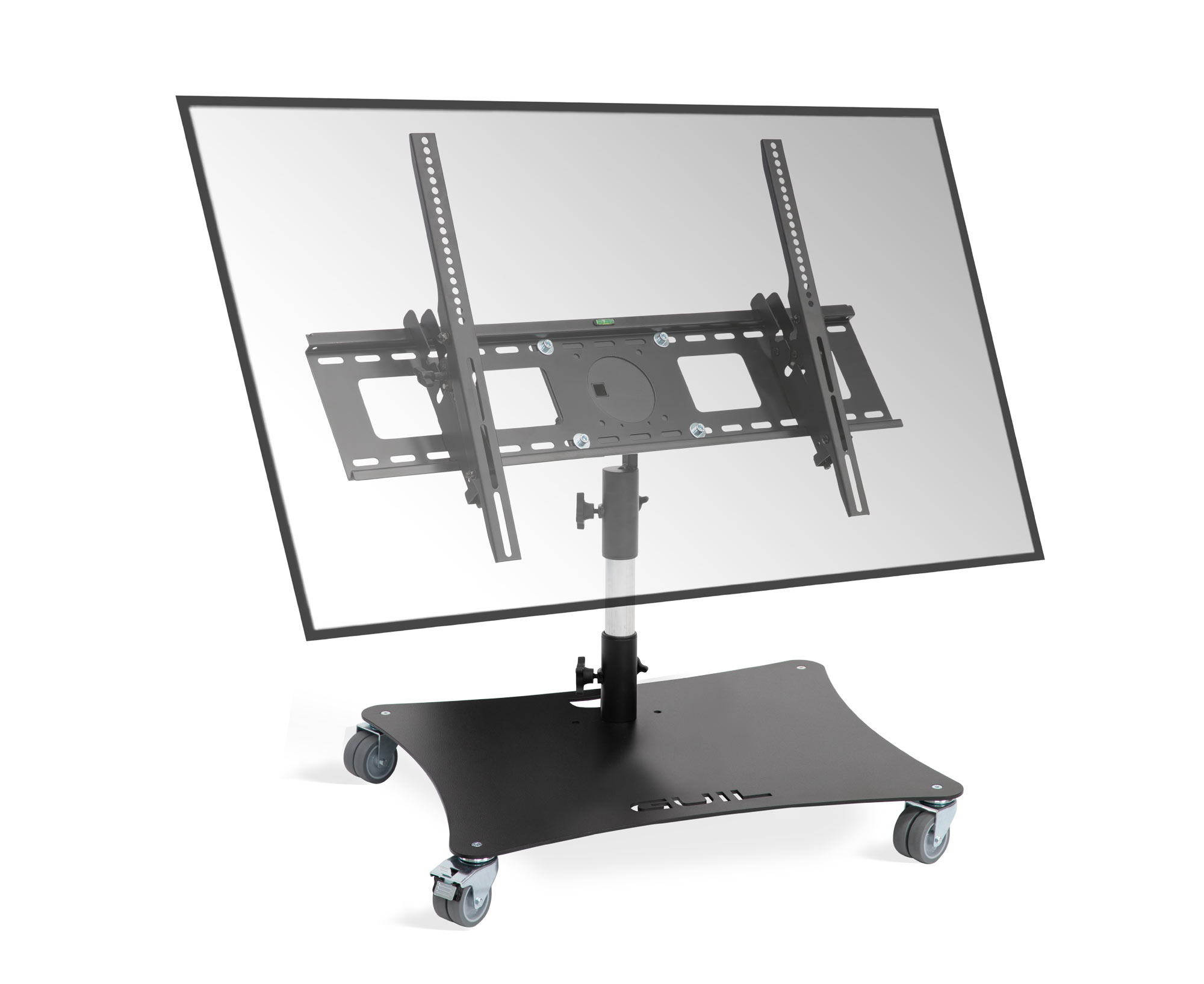 Nuestro soporte móvil de baja altura para pantallas de TV tiene un soporte especial que permite ajustar su inclinación en intervalos muy pequeños consiguiendo así un perfecto posicionamiento de la pantalla. Pudiéndose colocar en posición totalmente vertical, inclinada con el ángulo que se requiera e incluso en horizontal.