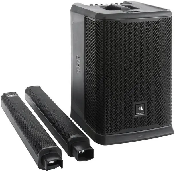 Compuesto por subwoofer de 12″ y una columna superior con 12 altavoces de 2,5″ montados en dos barras distanciadoras
